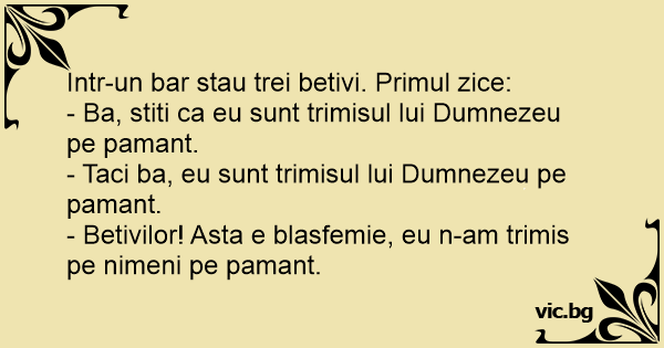 Intr-un bar stau trei betivi. Primul zice: