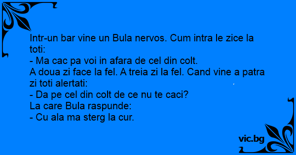 Intr-un bar vine un Bula nervos. Сuм intra le zice la toti: