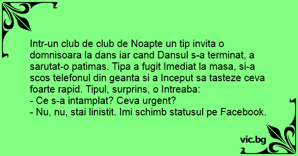- Nu, nu, stai linistit. Imi schimb statusul pe Facebook.