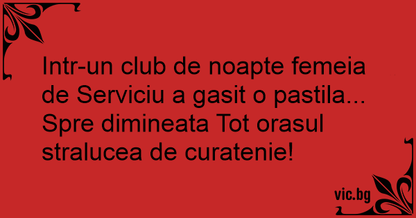 Intr-un club de noapte femeia de Serviciu a gasit o pastila... Spre dimineata Tot orasul stralucea de curatenie!