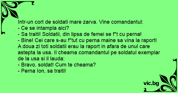 - Sa traiti! Soldatii, din lipsa de femei se f*t cu perna!