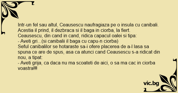 Intr-un fel sau altul, Ceausescu naufragiaza pe o insula cu canibali.