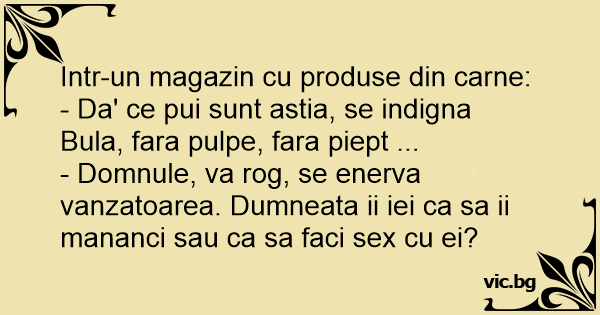 - Domnule, va rog, se enerva vanzatoarea. Dumneata ii iei ca sa ii mananci sau ca sa faci sеx cu ei?