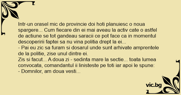 - Pai eu zic sa furam si dosarul unde sunt arhivate amprentele de la politie, zise unul dintre ei.