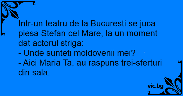 Intr-un teatru de la Bucuresti se juca piesa Stefan cel Mare, la un moment dat actorul striga: