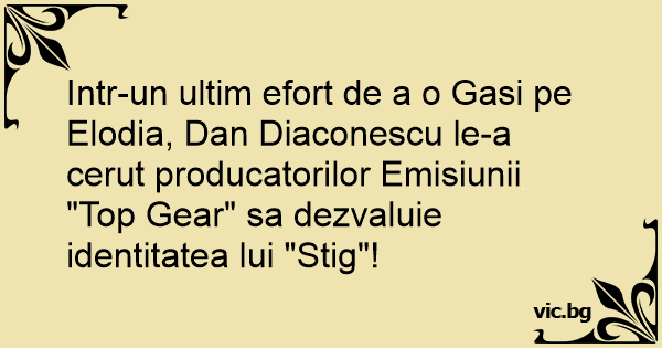 Intr-un ultim efort de a o Gasi pe Elodia, Dan Diaconescu le-a cerut producatorilor Emisiunii "Top Gear" sa dezvaluie identitatea lui "Stig"!
