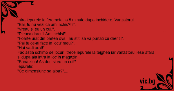 Intra iepurele la ferometal la 5 minute dupa inchidere. Vanzatorul: