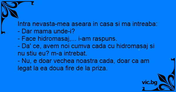 Intra nevasta-mea aseara in casa si ma intreaba: