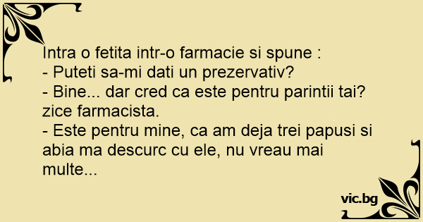 - Bine... dar cred ca este pentru parintii tai? zice farmacista.
