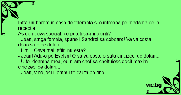 Intra un barbat in casa de toleranta si o intreaba pe madama de la receptie:
