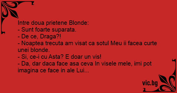 - Noaptea trecuta am visat ca sotul Meu ii facea curte unei blonde.
