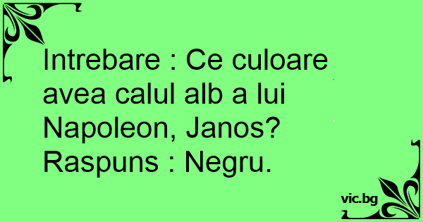 Intrebare : Ce culoare avea calul alb a lui Napoleon, Janos?