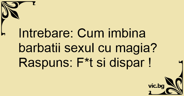 Intrebare: Сuм imbina barbatii sexul cu magia?