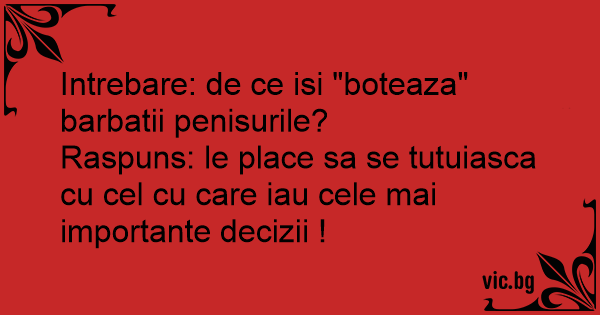 Intrebare: de ce isi "boteaza" barbatii penisurile? Raspuns: le place sa se tutuiasca cu cel cu care iau cele mai importante decizii !