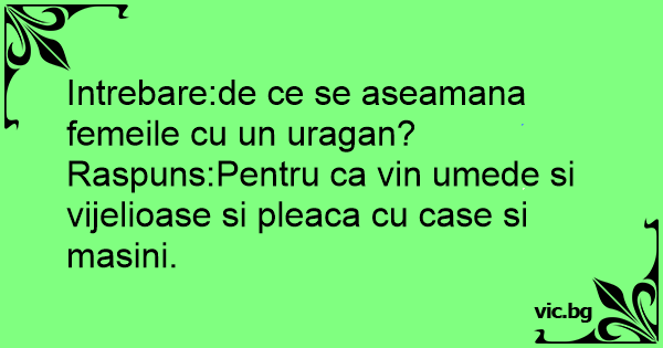Intrebare:de ce se aseamana femeile cu un uragan?