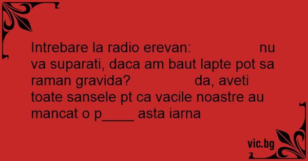 Intrebare la radio erevan: nu va suparati, daca am baut lapte рот sa raman gravida? da, aveti toate sansele pt ca vacile noastre au mancat o p____ asta iarna