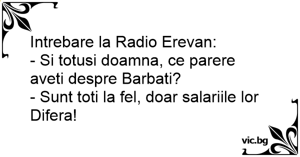 - Si totusi doamna, ce parere aveti despre Barbati?