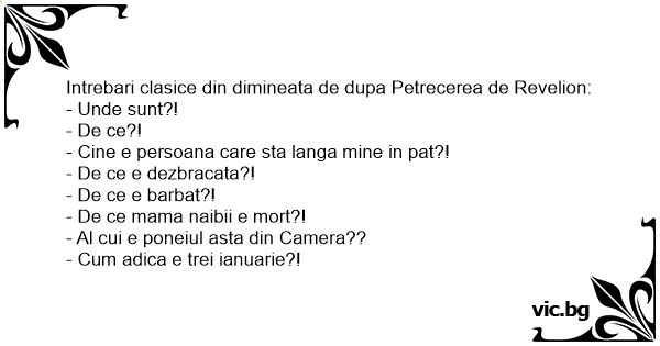Intrebari clasice din dimineata de dupa Petrecerea de Revelion: