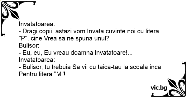 - Bulisor, tu trebuia Sa vii cu taica-tau la scoala inca Pentru litera "M"!