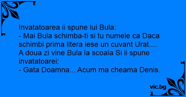 - Mai Bula schimba-ti si tu numele ca Daca schimbi prima litera iese un cuvant Urat....