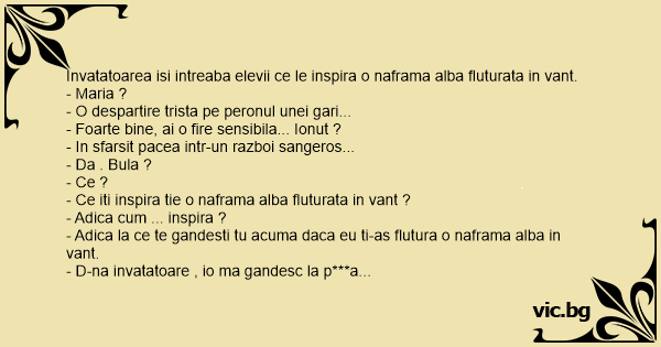 - Apoi d-na invatatoare mie puteti sa-mi fluturati si-un tramvai ca eu tot la p***a ma gandesc !!!