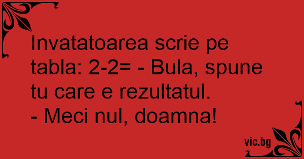 Invatatoarea scrie pe tabla: 2-2= - Bula, spune tu care e rezultatul.
