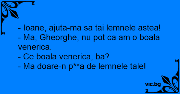 - Ma, Gheorghe, nu рот ca am o boala venerica.