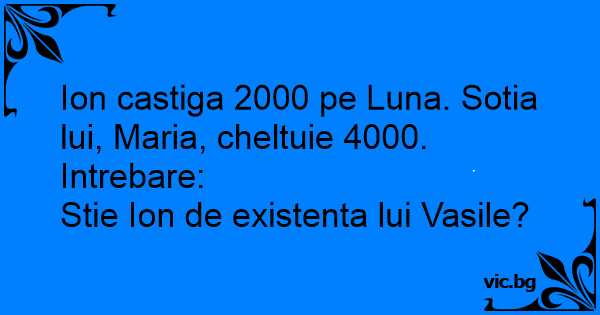 Ion castiga 2000 pe Luna. Sotia lui, Maria, cheltuie 4000. Intrebare: