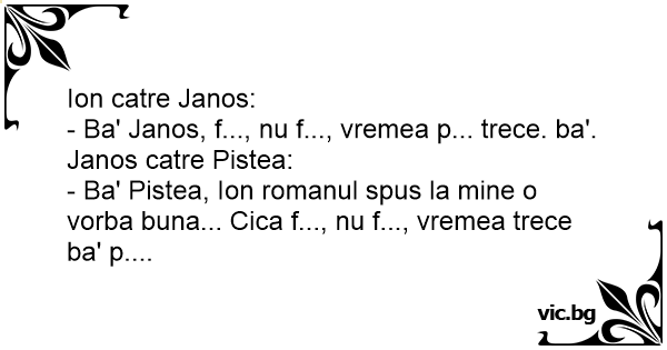 - Ba' Pistea, Ion romanul spus la mine o vorba buna... Cica f..., nu f..., vremea trece ba' p....