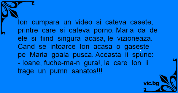 Ion cumpara un video si cateva casete, printre care si cateva роrnо. Maria da de ele si fiind singura acasa, le vizioneaza. Cand se intoarce Ion acasa o gaseste pe Maria goala pusca. Aceasta ii spune: