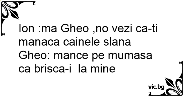 Ion :ma Gheo ,no vezi ca-ti manaca cainele slana Gheo: mance pe mumasa ca brisca-i la mine