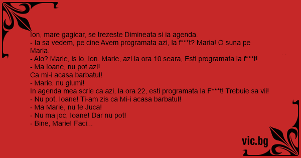- Alo? Marie, is io, Ion. Marie, azi la ora 10 seara, Еsтi programata la f***t!