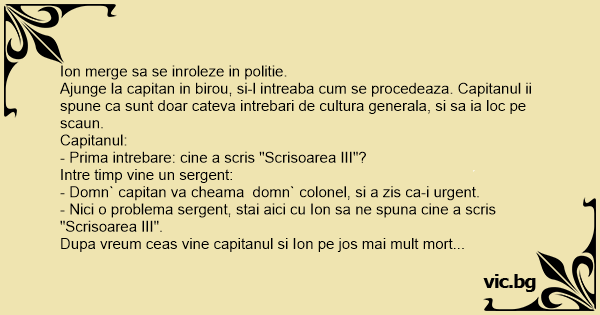 - Nici o problema sergent, stai aici cu Ion sa ne spuna cine a scris "Scrisoarea III".
