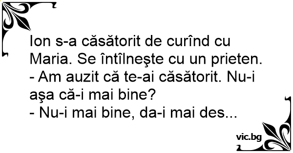 Ion s-a căsătorit de curînd cu Maria. Se întîlneşte cu un prieten.