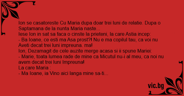 Ion se casatoreste Cu Maria dupa doar trei luni de relatie. Dupa o Saptamana de la nunta Maria naste...