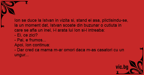 - Dar cred ca mama m-ar omori daca m-as casatori cu un ungur...