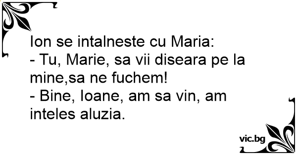 - Tu, Marie, sa vii diseara pe la mine,sa ne fuchem!