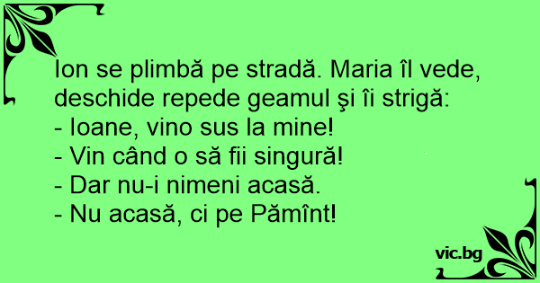 Ion se plimbă pe stradă. Maria îl vede, deschide repede geamul şi îi strigă: