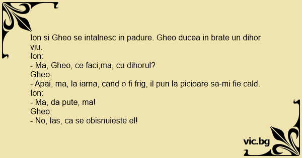 - Ma, Gheo, ce faci,ma, cu dihorul?