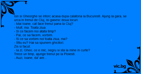 - Auzi, ma? Prost еsтi tu. Eu stiam de la Bucuresti, da' daca spuneam de atunci, ce mai vorbeam noi atita drum?