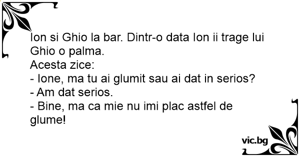 - Ione, ma tu ai glumit sau ai dat in serios?
