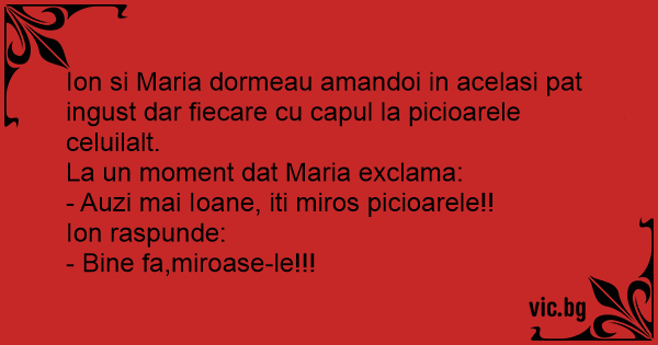 Ion si Maria dormeau amandoi in acelasi pat ingust dar fiecare cu capul la picioarele celuilalt.