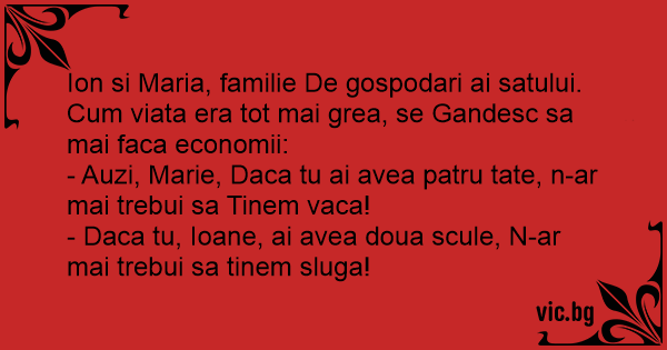 - Daca tu, Ioane, ai avea doua scule, N-ar mai trebui sa tinem sluga!