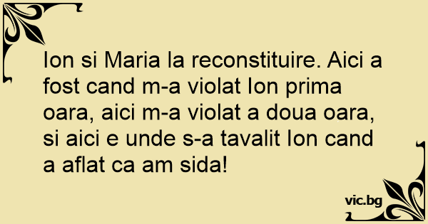Ion si Maria la reconstituire. Aici a fost cand m-a violat Ion prima oara, aici m-a violat a doua oara, si aici e unde s-a tavalit Ion cand a aflat ca am sida!