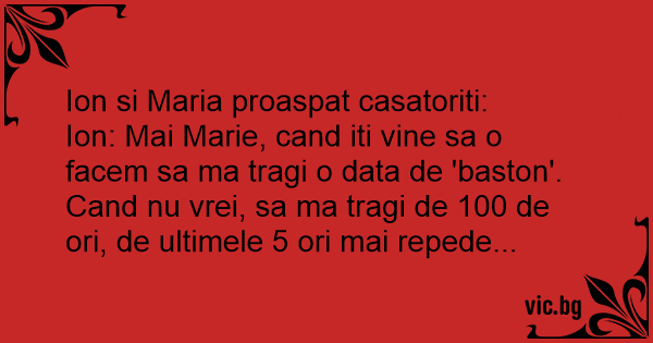 Ion: Mai Marie, cand iti vine sa o facem sa ma tragi o data de 'baston'. Cand nu vrei, sa ma tragi de 100 de ori, de ultimele 5 ori mai repede...