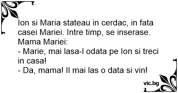 - Marie, mai lasa-l odata pe Ion si treci in casa!