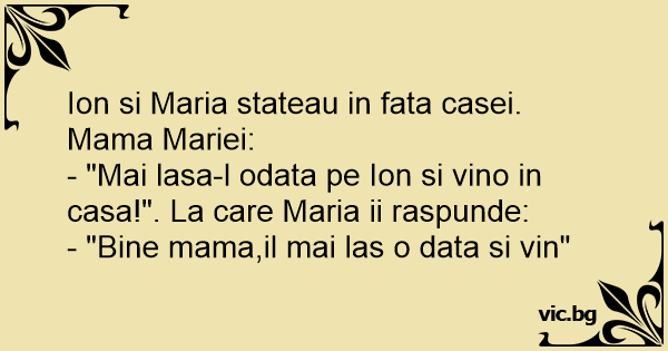 - "Mai lasa-l odata pe Ion si vino in casa!". La care Maria ii raspunde: