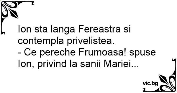 - Ce pereche Frumoasa! spuse Ion, privind la sanii Mariei...