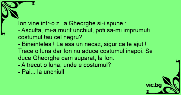 - Asculta, mi-a murit unchiul, poti sa-mi imprumuti costumul tau cel negru?
