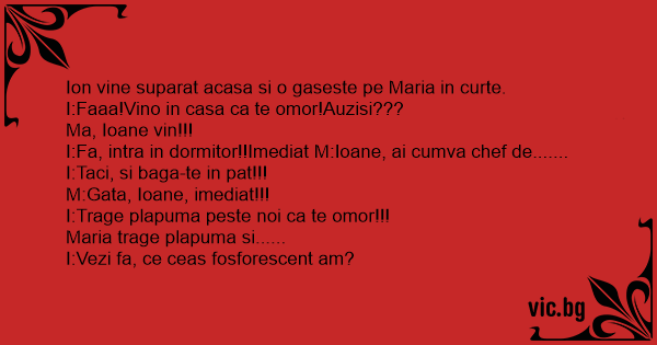 I:Fa, intra in dormitor!!Imediat M:Ioane, ai cumva chef de.......